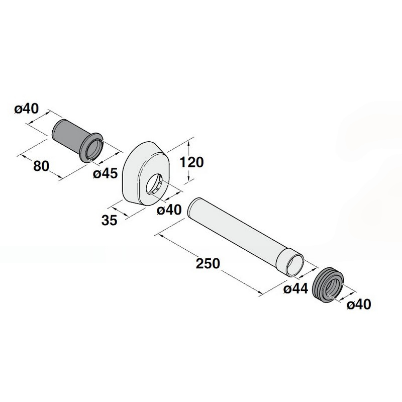 Canotto universale di allacciamento telescopico per il collegamento tra il tubo di risciacquo e il vaso a pavimento, utilizzabile per modelli di cassette geberit unica e unica plus