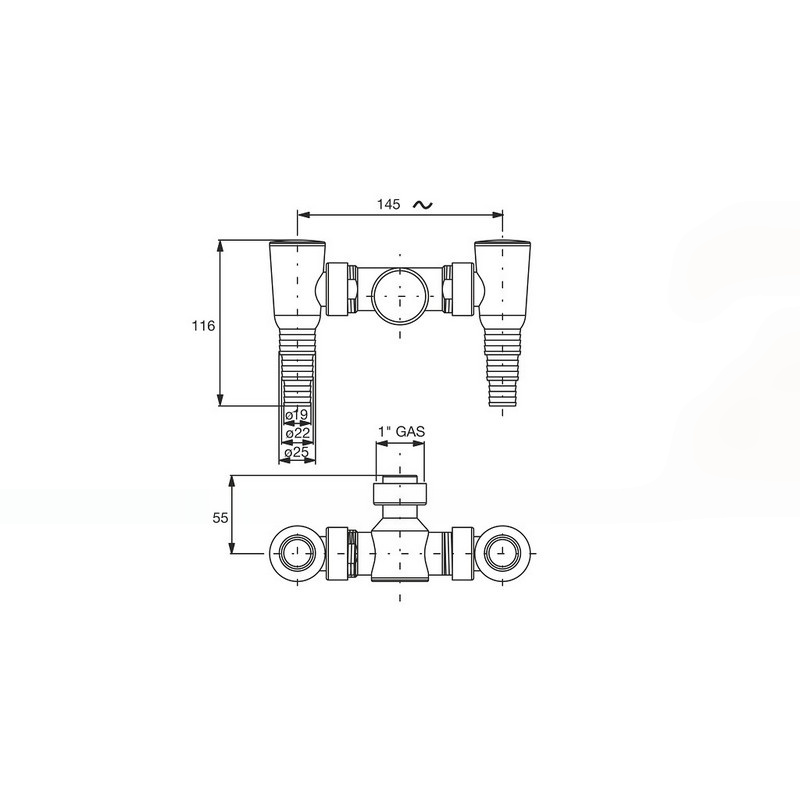 Doppio attacco di scarico per lavatrice o lavastoviglie. Scarico filettato 1”