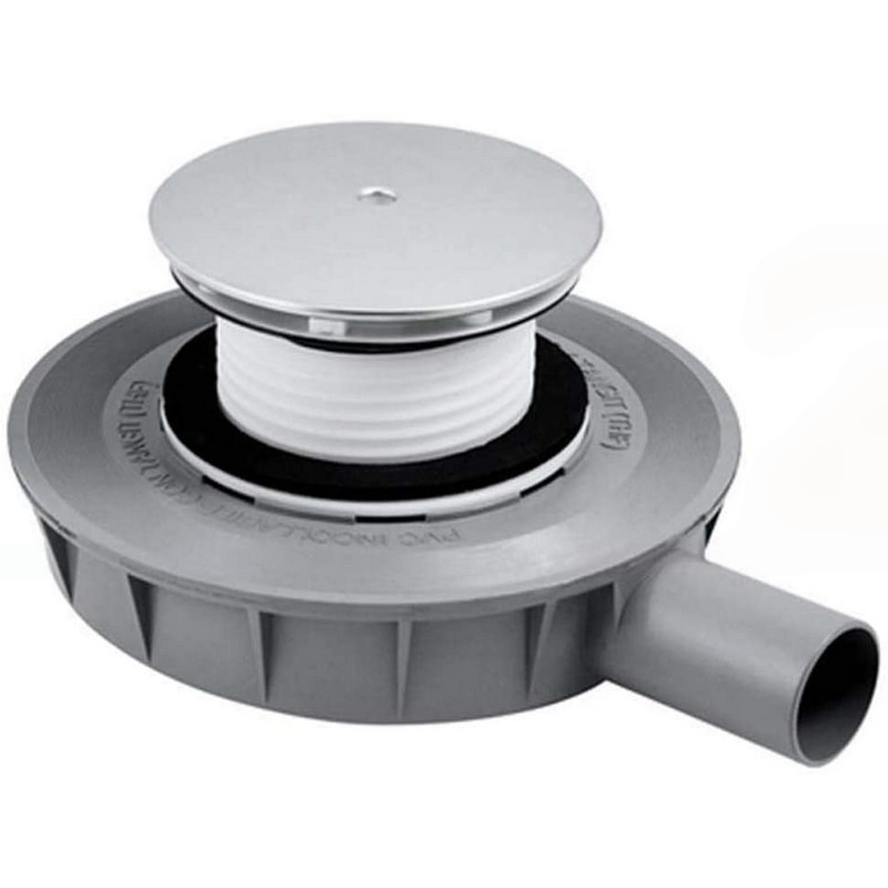 Sifone ultra ribassato per doccia a filo pavimento per piatti doccia con foro ø 90 mm con coperchio in acciaio inox ø 120