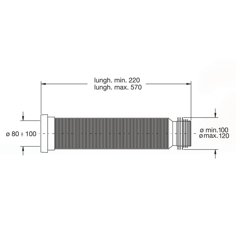 Manicotto flessibile ed estensibile per il collegamento al vaso wc
