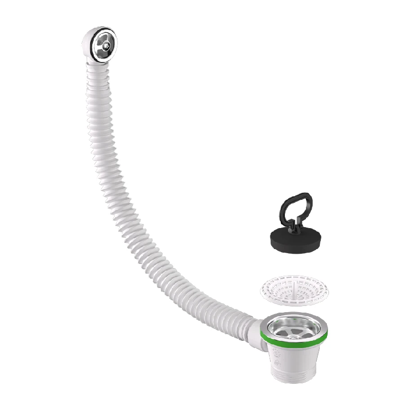 Piletta per lavello inox cucina 1"1/2 con troppopieno rotondo