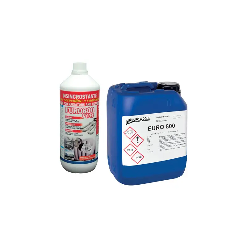 Il disincrostante EURO 800 viene usato per la disincrostazione rapida di caldaie, boilers, serpentine e scambiatori di calore. Rimuove le incrostazioni calcaree e i residui di corrosione dagli impianti multi metallici .