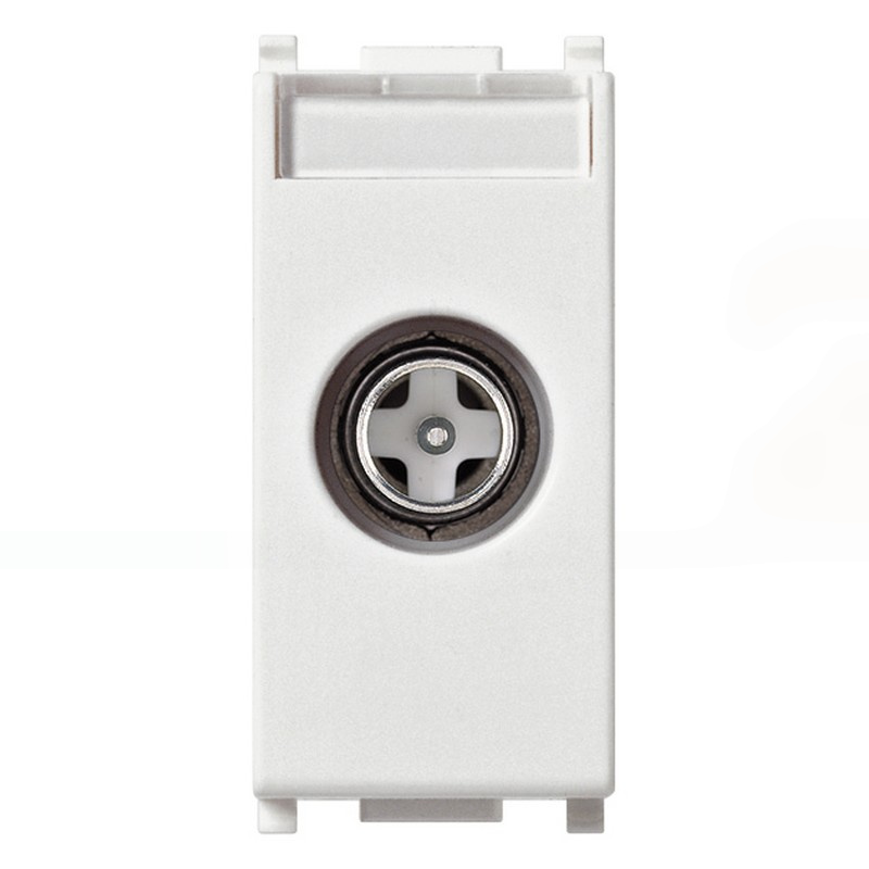 Presa coassiale TV-RD-SAT, 5-2400 MHz, diretta (derivata), con connettore maschio, attenuazione di derivazione 1 dB, bianco. Permette il passaggio di corrente continua e segnali di controllo (24 V 500 mA max)