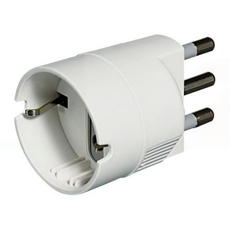 Adattatore con spina 2P+T 16A e presa tedesca - colore bianco - in blister 90x122 mm (LxA)