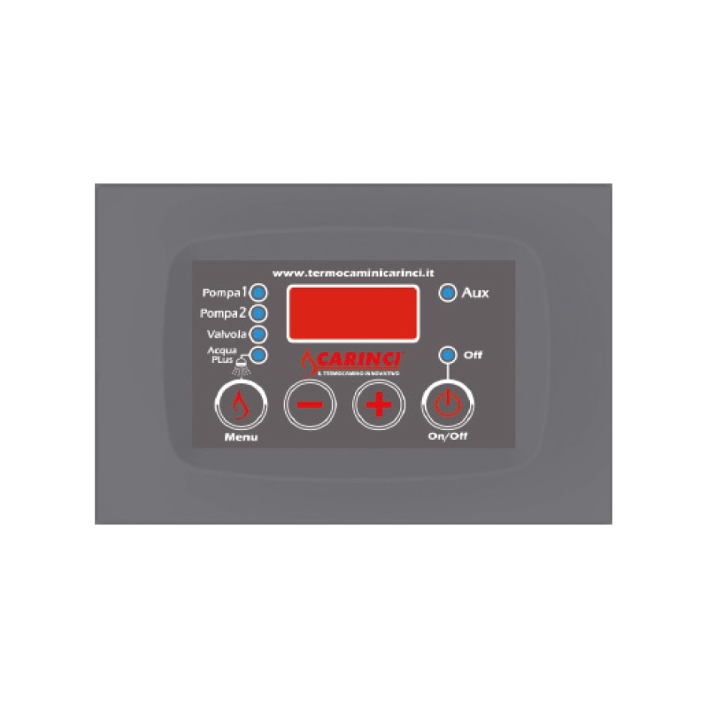 Centralina elettronica digitale 220V per termocamino, con funzioni: Termostato pompa 1 e pompa 2; Termostato Elettrovalvola; Sistema Acquaplus e Contatto AUX. Il Termoregolatore permette di gestire in maniera completa ed efficace il sistema di riscaldamento in cui è inserito il termocamino. Tramite i suoi ingressi è possibile rilevare: