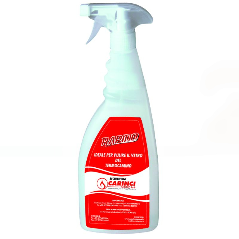 Per la pulizia di vetri di termocamini.La nuova formulazione permette per un miglior effetto pulente anche su incrostazioni. Uso: spruzzare il prodotto a 30 cm dalla superficie da pulire.Lasciare agire.Risciaquare con acqua fredda strofinando se necessario. Nota bene: I vetri devono essere tiepidi o freddi.Per incrostazioni tenaci lasciare agire per alcuni minuti. Misure di protezione: In caso di contatto con la pelle o gli occhi, lavare abbondantemente con acqua. Conservare fuori dalla portata dei bambini.