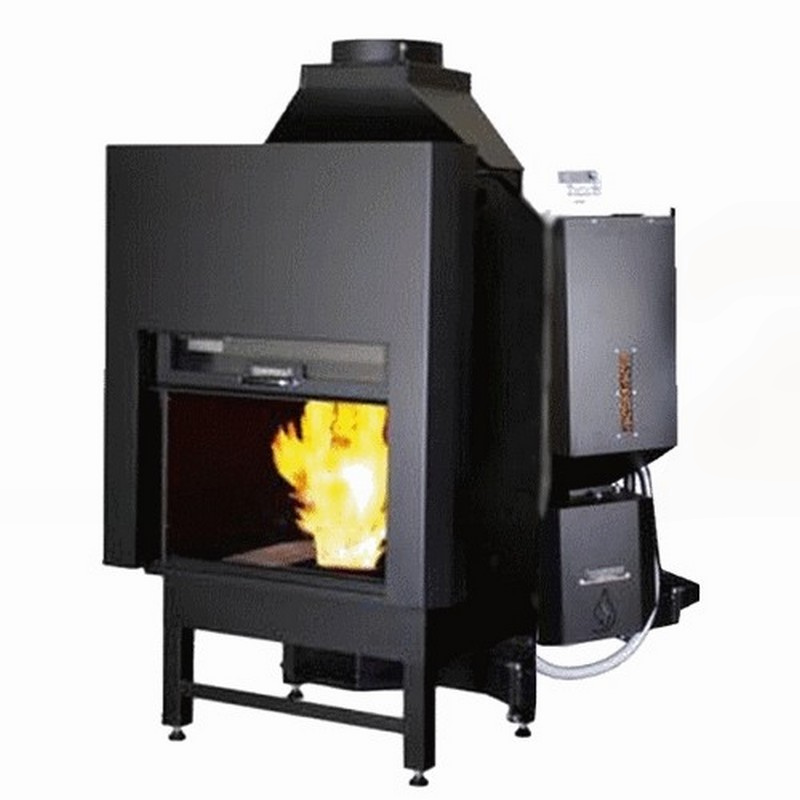 Il termocamino è dotato di kit automatico per pellets composto damonoblocco Al-Si (lega allumio-silicio) dotato di sistema di sicurezza di rilevazione della temperatura per l’avviamento dellecoclee e sistema di riduzione dell’aspirazione naturale, serbatoio di caricamento in lamiera di acciaio 35/10 (capacità a 60 kg), due riduttori (PAM 30 e PAM 50) a lubrificazione permanente, motore asincrono da 0.25 kW ad alimentazione elettrica 230 V trifase (collegamento a triangolo) con sistema inverter modulante SIEMENS G 110, due coclee di trasporo del materiale combustibile in acciaio inox disposte a quote sfalzate (spazio utile 25 cm una dall’altra) funzionanti a velocità differenziata, bruciatore in ghisa a due sezioni (sezione inferiore preparazione alla combustione - sezione superiore area di combustione ) e un sistema di sicurezza (mancata accensione) con sonda di controllo della temperatura dei fumi .