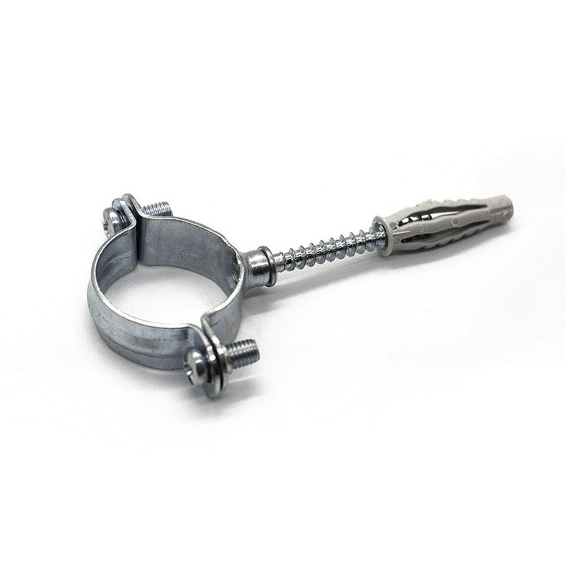 Collare leggero in acciaio zincato con filettatura M6, viti laterali, vite di congiunzione M6, tassello TX4 in nylon PA6.