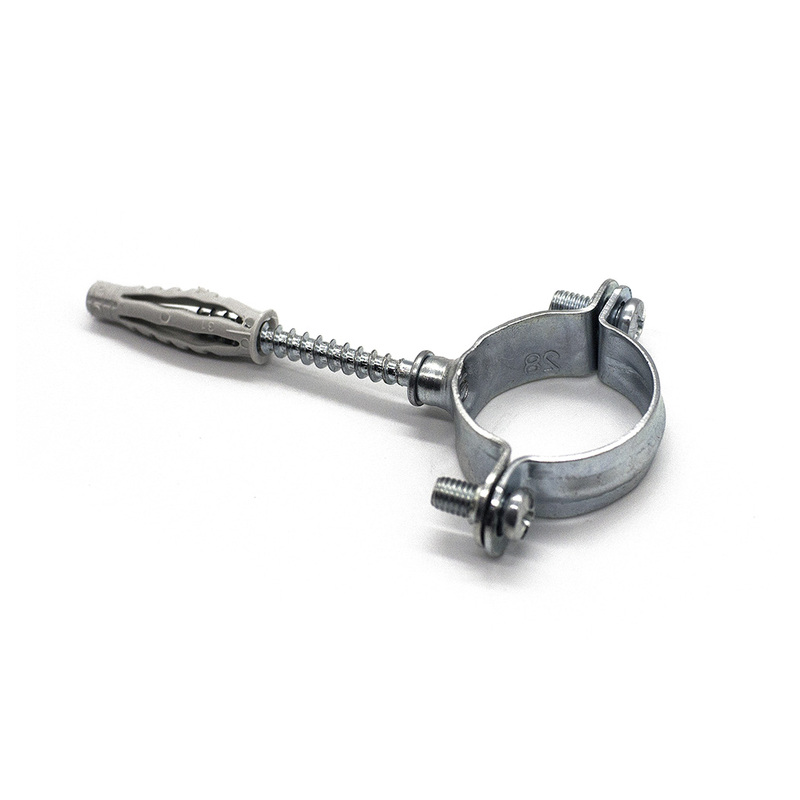 Collare leggero in acciaio zincato con filettatura M6, viti laterali, vite di congiunzione M6, tassello TX4 in nylon PA6.