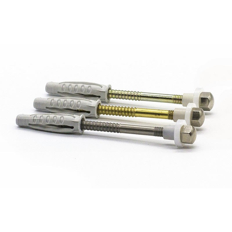 Fissaggio verticale wc e bidet inox WB2, 4 tasselli SX Plus 8, 4 viti 7/32“ x 80 mm in acciaio inox (AISI 430), 4 dadi ciechi W 7/32“, 4 boccole in nylon
